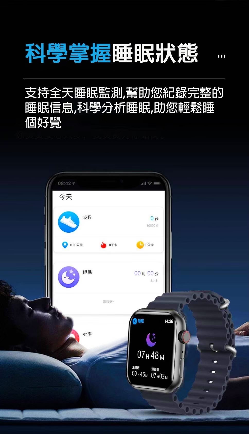 - 睡眠記錄: 可手動及自動睡眠記錄, 了解自己的睡眠狀況~