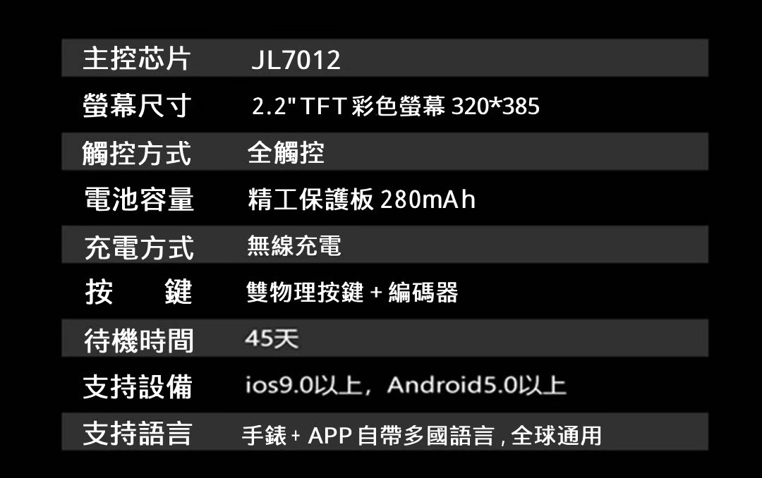 - 支持語言-手錶+APP自帶多國語言,全球通用